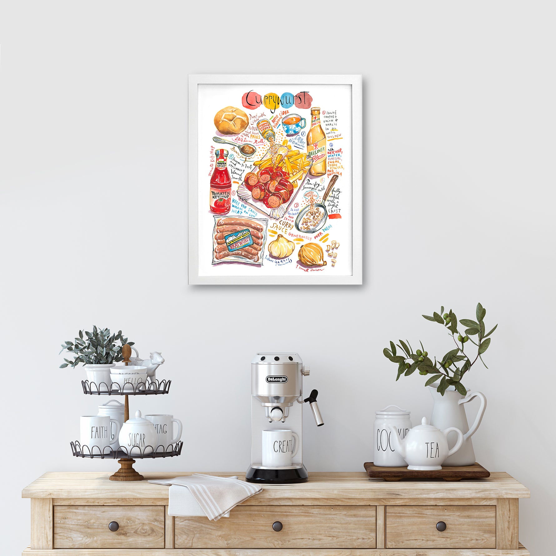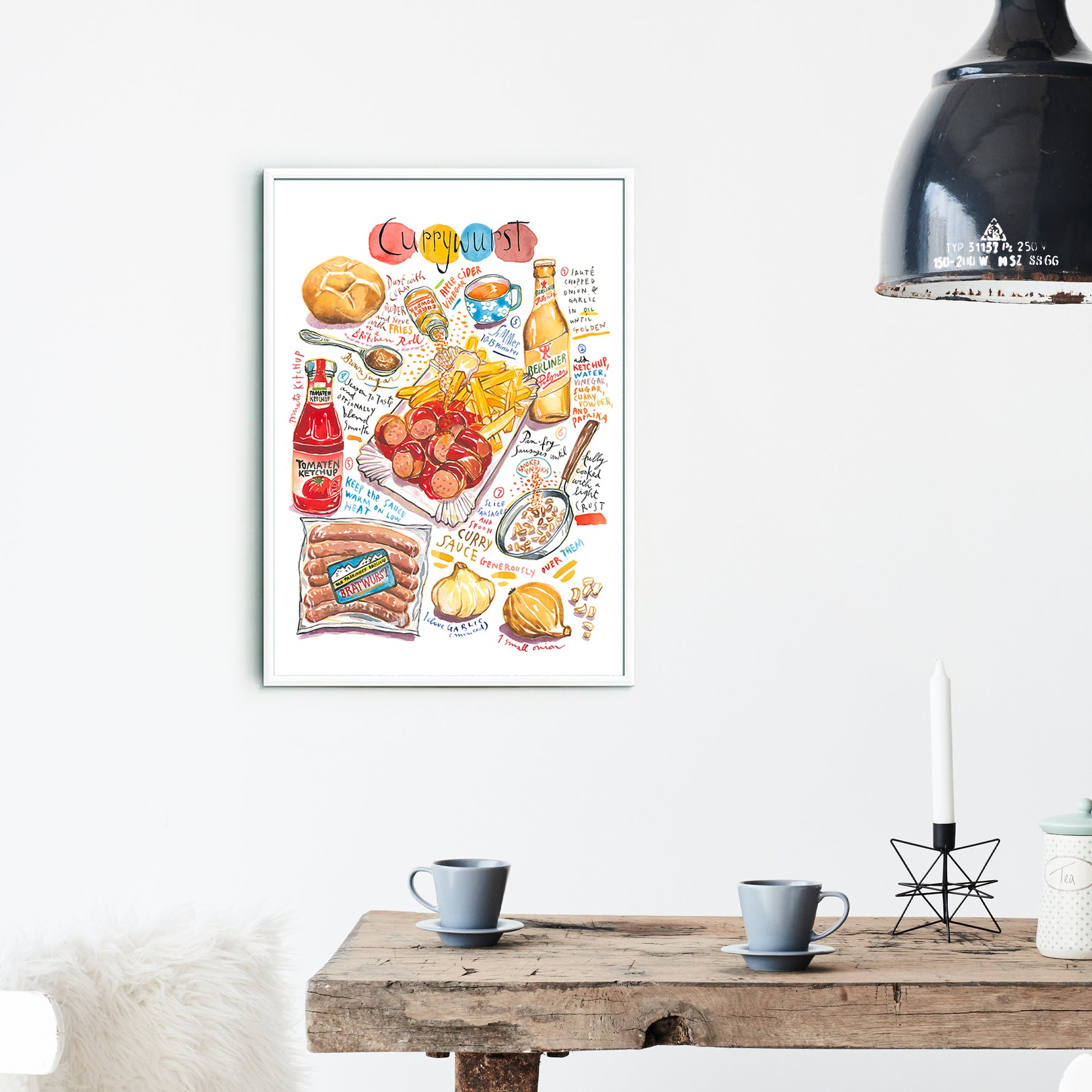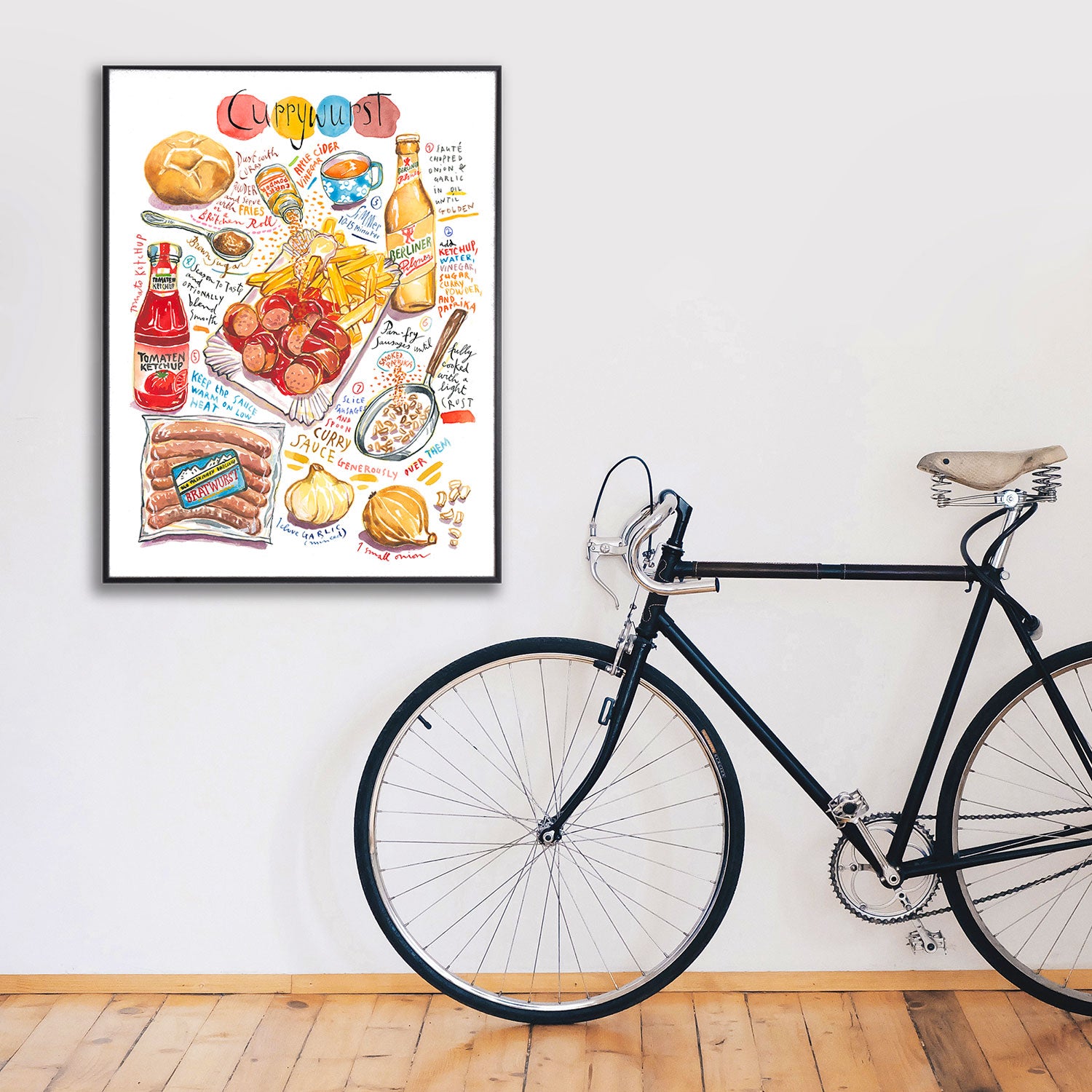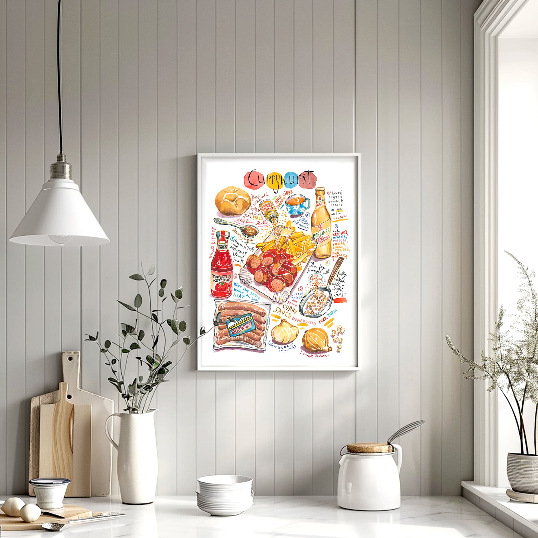 This fine art print is inspired by Berlin street culture, featuring the iconic Currywurst recipe that celebrates Berlin cuisine, German comfort food, and classic street food tradition.