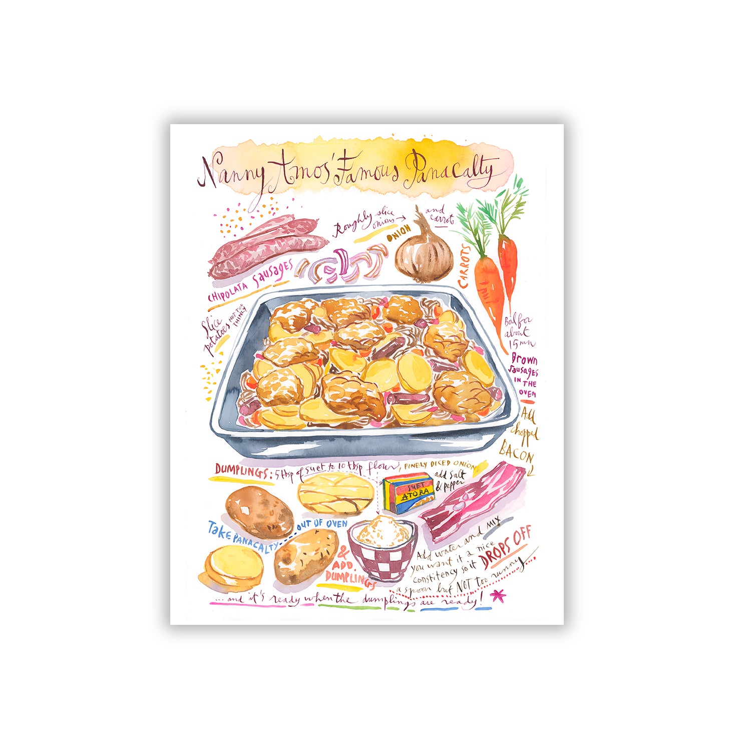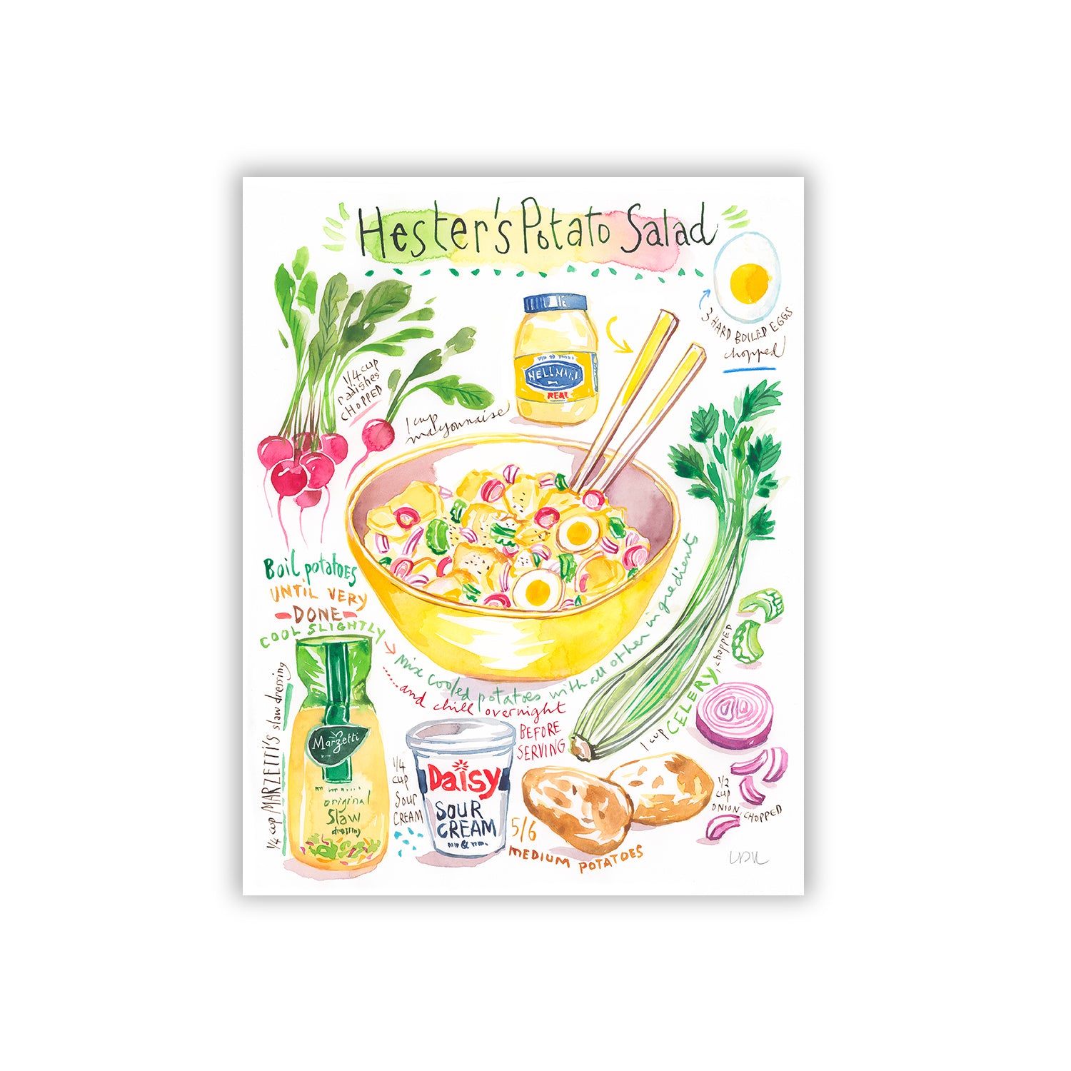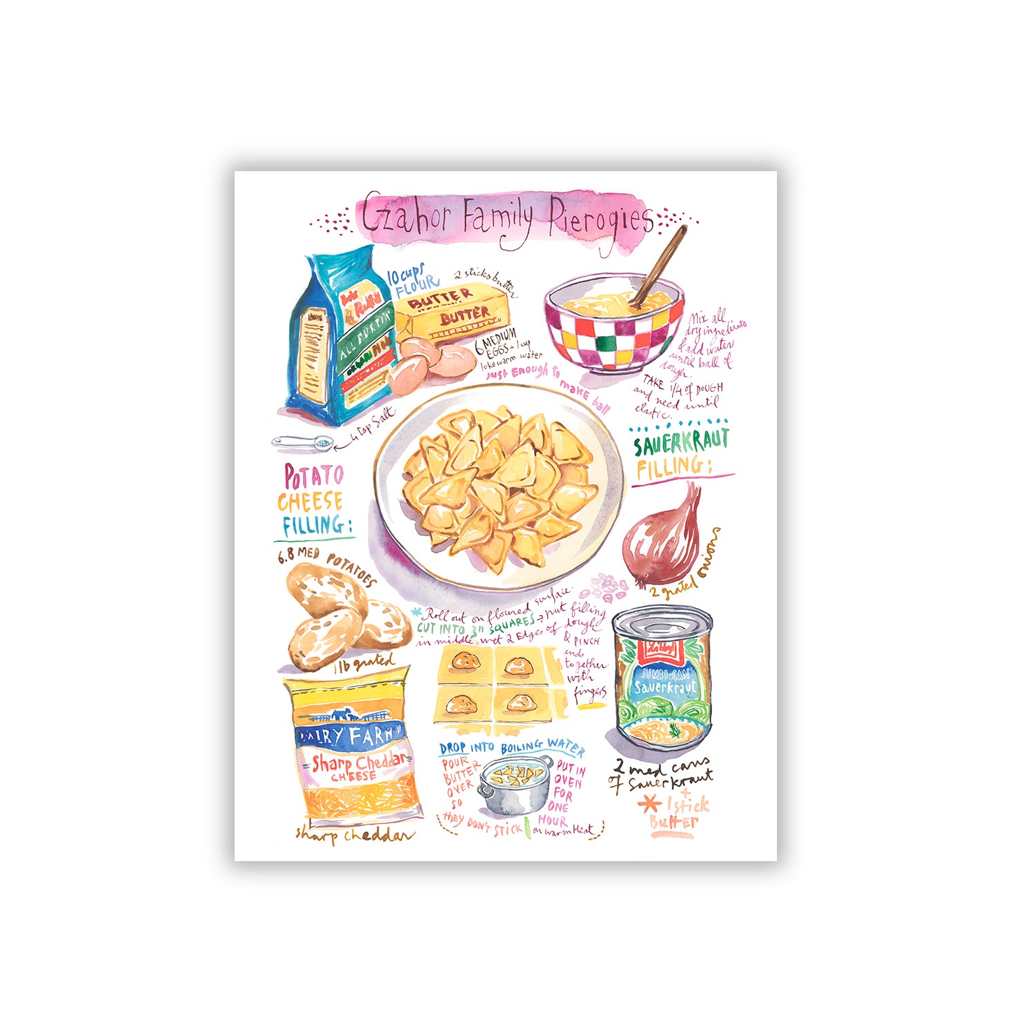 You will receive a high quality art print, a digital file or both of your recipe illustration.
